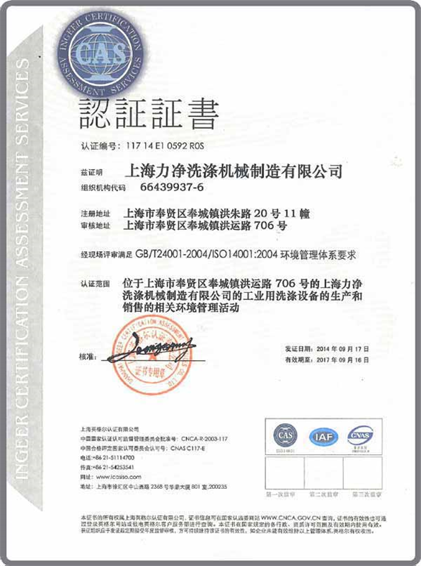 2、經(jīng)過(guò)全體員工近半年的努力,公司于2014年9月順利通過(guò)國(guó)家專業(yè)認(rèn)證審核,獲取了ISO14001:2004環(huán)境管理體系認(rèn)證;